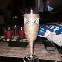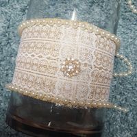 Hi, I don't know if this looks good...... someone told me the vases look cheap and I want feedback from you. Feel free to say whatever you want and/or give me ideas. I used jute, lace and pearls for...
