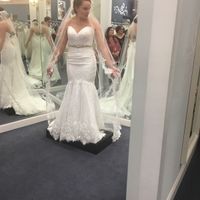 So this is my wedding dress and I just wanted to show everyone! I don't have a photo of the back but it is corset. Excuse my face lol I was very excited when I tried this one on!!!