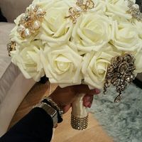 Please help....I have started on my bouquet and I feel that something is missing. Any thoughts on what I can add other than more brooches???