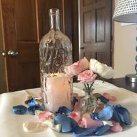 Hi friends! I'm looking for some feedback / ideas on our centerpiece mock-ups.... A few ideas/comments: I'm planning to frost the bottles, so it's a little softer we have 8 tables and my initial...