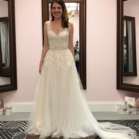 Now I can't decide which I want to return!!!! Help I love them both!! My venue is a barn though, so I feel like the new one fits the venue better. This is the second dress I just got today! And in...