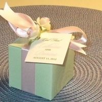 Well, I am working on the favors. These will go at each place setting, on the bread plate. Kelly King of www.affordableweddinginvites.com designed the favor tags. It matches the menu cards, escort...