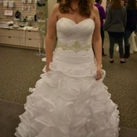 I just received my dress and I'm so excited ( even though you can't tell from my expression) to be marrying my soulmate. Lets see those dresses. Still looking for jewelry but working on it. Back of...