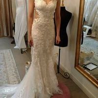 My dress came in! Super early.. wasn't expecting it til May. I just had to try it on! Can't wait til August to get alterations to make it fit perfectly. I fell in love with it all over again ...