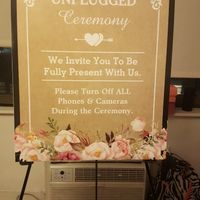 I just received my "Unplugged Ceremony" sign from Zazzle. It came rolled up in a tube. I just glued it to a poster board that I got from the 99 cent store, put it up on the stand and ta da! We are...