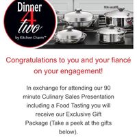 So I got an email today saying that if we sit through a 90 min culinary demo we will receive a 3 day/2 night all inclusive stay, wedding bands, champagne flutes, and pot holders. Clearly they are...