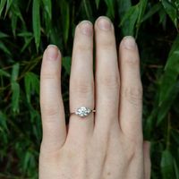Having a hard time deciding what kind of style band will go well with my engagement ring. Can I see yours for inspiration? Here's my 3 stone Moissanite ring
