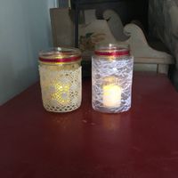 Recently I posted if I should do lace or crochet jars for wedding. Well I practiced doing both and the pic is below. Theme is rustic wedding with cranberry color. Let me know what you like best. I...