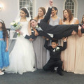 Church ceremony at 9 am with our pastor and reception. About 12:15 pm we cut cake inmediately then DJ spinned his music following people dancing . Non-professional and 2 sneakpeak professional photos...