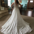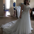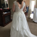 Two weeks out, and finally got pics of the dress on me at the last fitting so I thought I'd share. Seamstress was working in figuring out bustle, which proves complicated with the skirt of my gown....