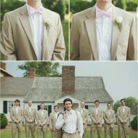 Okay.. our wedding colors were narrowed down to light pink and gold.. however the groomsmen are all wearing tan suits with the pink color bowtie.. idk why I keep feeling like it won't look great.. my...