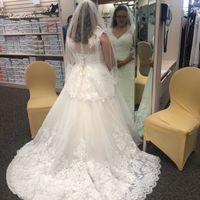 Dress #1 I have a shrug to wear with it. Dress #2 don't need shrug and has more bling. Yes I asked this kind of before and the veil matches so now I'm more in love. FH says go for it.
