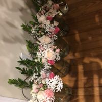 Finally finished up our flowers for tomorrow! The first picture are flowers for the shepherds hooks for the ceremony, the second picture is our centerpieces, and the third are the wine barrel wreathes...