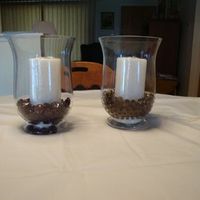 Girls, I need some good ideas for centerpieces. I keep changing my mind. First I wanted 8" glass fish bowls with colored stones in the bottom with floating candles/flowers on top and have them sitting...