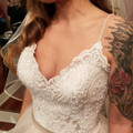 So my dress is beaded on the bodice. I'm not wearing a necklace and I'll have my hair in a high bun. My veil is plain with thin satin trim. The jewelry pictured is all rose gold, which is what I want,...
