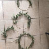 Hey y’all! I just got done with some test greenery hoops for our reception decor! The entire reception will be decorated by these, as well as eucalyptus garland and taper candles.... thoughts?...