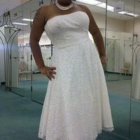 Post the first dress you tried on, the runner up, and then the dress you chose! Can't wait to see the photos! 1. David Bridal tea length lace dress. I hated the lace. 2. Chiffon dress from DB. 3....