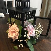 With a struggle, due to my lack of a crafty bone I finished our centerpieces. The lantern is about 13" tall. I am thinking adding some votive candles around it and a wooden block table number. Would...