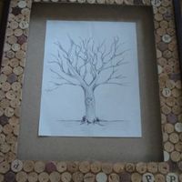 That's right, I'm keeping myself rather busy. I put my corks to use! Made this cork mat for my shadow box that our fingerprint tree will be in The sketch that's in there is one I did a little while...
