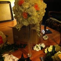 I haven’t been up here too often lately but I wanted to post my DIY Centerpiece. The tables will have lots of candles and I’ll drape strings of pearls to the bottom of the flower arrangements. I think...