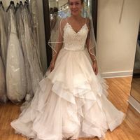 Omg I am in love again and remember why I chose this dress. I hadn't seen my dress since February and I got all the feels again! I dropped it off for alterations and she has to adjust the straps,...
