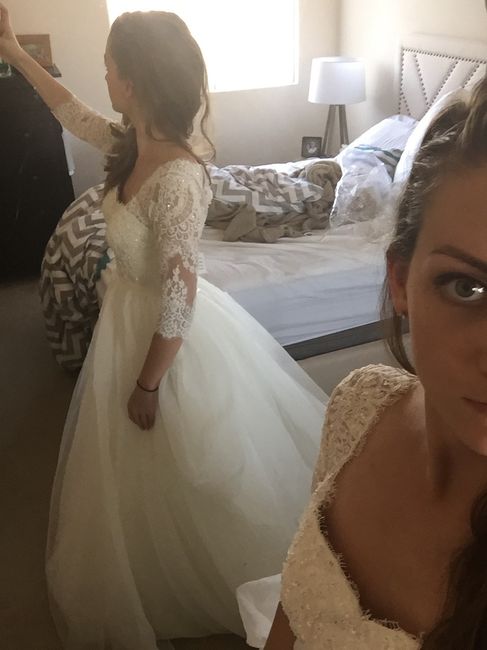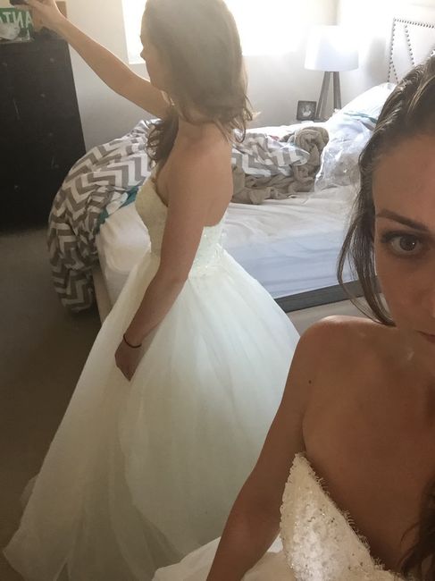 I got the Oleg Cassini 3/4" Organza wedding dress cwg731 and I'm really debating on whether or not to make it strapless... My FH has said before that he doesn't like sleeves, straps, etc. but then he's also said he likes lace on the back and sleeves that aren't "full sleeves"... Anyway... Here's a picture of me in the dress. On the left is strapless with no slip, and the right is w/the sleeves and a ballgown slip underneath (I'll be wearing my hair down)