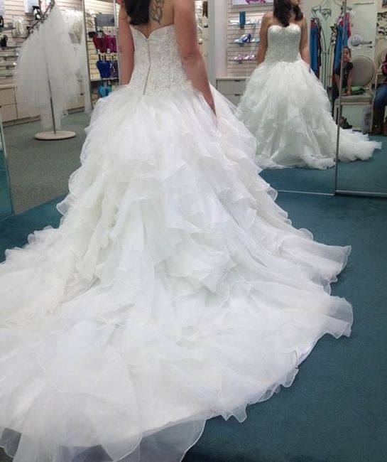 So i'm leaning towards purchasing a dress I tried on at david's bridal (see attached picture). I wanted to make it my own by adding some lace or embroidery to the ruffles. I found a dress by an Italian designer that I would LOVE to have but i'm sure is totally out of my price range. would it be too much if I add to the bottom of the david's bridal dress like the Italian dress? the ruffles go different directions for each picture, not sure if that makes a difference. I sure wish I knew someone that can draw dresses that could combine the looks so I can see what it looks like before making that decision!
