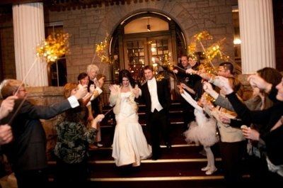 I really wanted to do a sparkler send off, but found out tonight that sparklers aren't legal in my state. Totally bummed!!! Does anyone have any other good ideas of what might look good for pictures and such for our send off? It will be late and dark out after the reception.