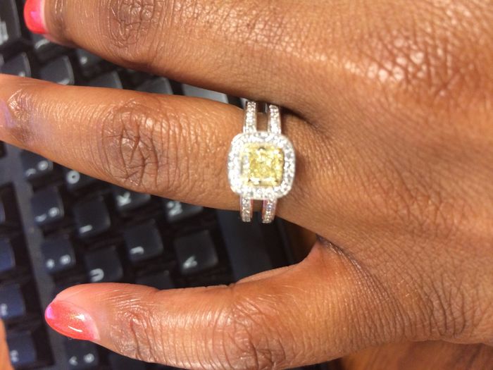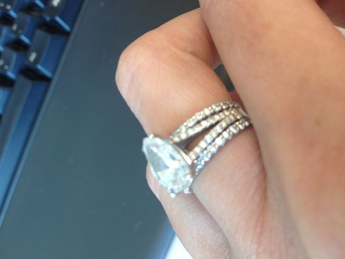 My e-ring has a split shank band, but the two sides run very parallel to one another so I've been struggling with the way a wedding band looks alongside it! I originally wanted something a little different and maybe milgrain-esque, but I'm now thinking that we'll just have to have a custom band made. I'm looking for a little inspiration... did you go a little funky with your band? Did you buy a matching band?