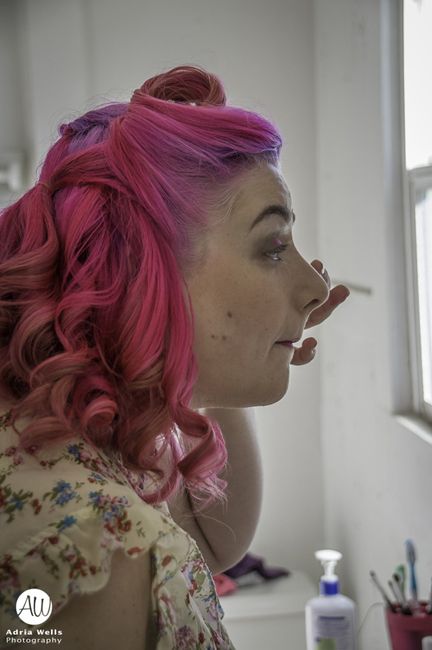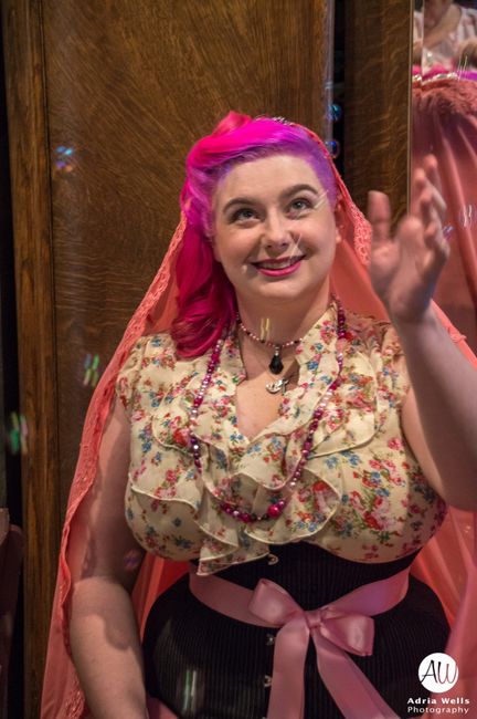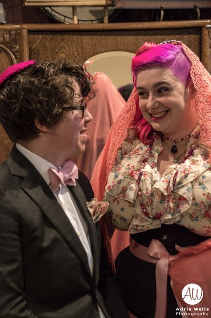 Okay, so technically I've been back on the forum while married for a while now... but now I have pictures to share. First up, I have the obligatory Will-Smith-pose-"LOOK AT MY WIFE" pictures. She did her own makeup partly because it was cheaper and partly because as an actress, she doesn't trust anyone else with it -- it's practically in the community theatre code of ethics.