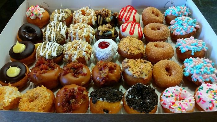 What's everyone doing for dessert? FH really does not want a traditional cake. We are thinking of doing a small cutting cake with either a table of different desserts, or gourmet donuts. FH LOVES this donut place where we would get the gourmet donuts from and would probably do something like the picture. My mom hates this idea and thinks donuts are not appropriate for a wedding. Thoughts? As a guest, would you be disappointed with donuts?