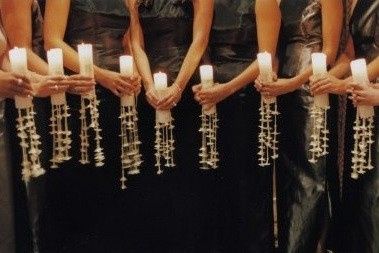 Originally, I was just going to find an alternative to flower bouquest. However, my budget expanded a bit and I realized that I really want a bouquet for at least myself. I have 7 bridesmaids though so I may not be able to get a bouquet for each bridesmaid. Would it look awkward to have the bridesmaids alternate between bouquest and a candle? The wedding will be outside at dusk so I think the candles would look cool. I've already checked with the venue and they'll allow the candles.