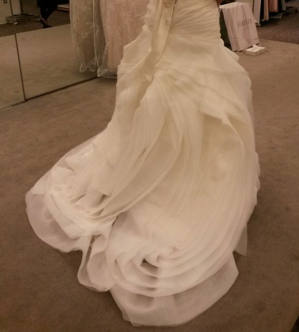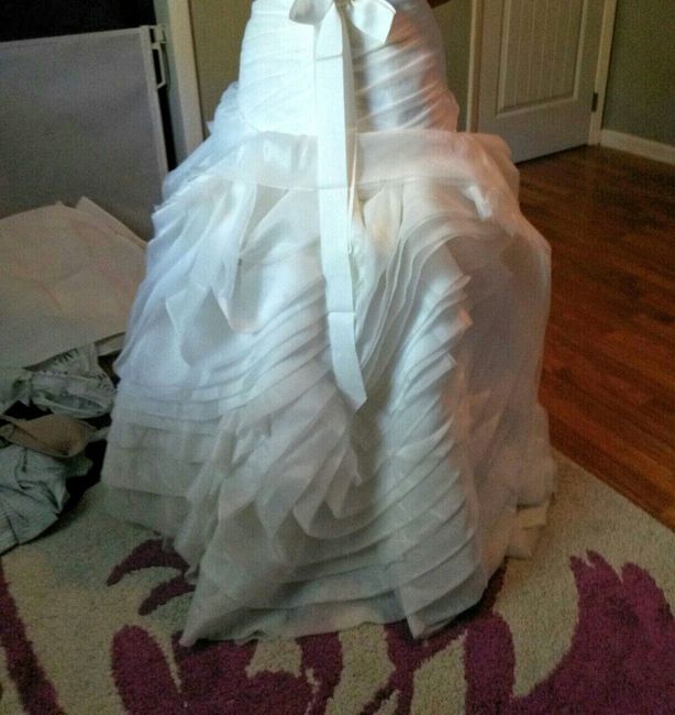I went for my final fitting today (yay!) and I asked my seamstress about a bustle and she said the way my dress was styled she wouldn't be able to bustle it. It has a loop under the train she said I could hold to keep my train up, but I don't want to have to hold onto it all night! My train isn't cathedral length or anything, but it's still in a hazard zone for people feet and dirty floors. Any other alternatives??