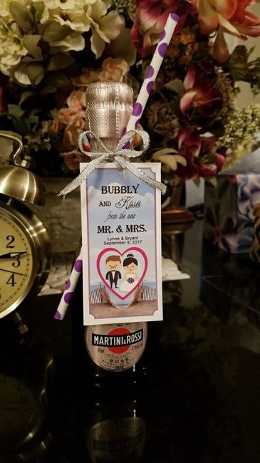 Our venue charges $30.00pp for wine and soda. I opted for a red sangria bowl at $125.00. Im giving pink sparkling wine as favors that cost me $3.79 each. Venue is ok with that IF no one opens the little bottles at reception. Here they are!