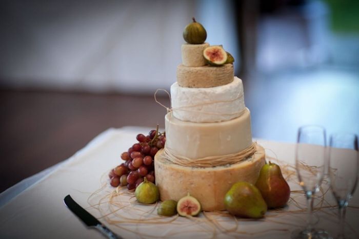 Both the FH and I like cheese more than cake, so we've decided to go with a Cheese Wheel Wedding "Cake", and a buffet of other sweet treats instead. I love how cute this idea is all over the internet... but the more I look into it, the more I'm finding that they all appear to be DIY.