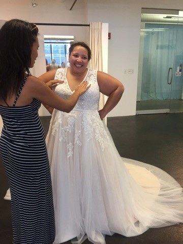 The consultant didn't listen to a thing I told her about what I wanted and kept bringing me the opposite of what I wanted. (I'm a curvy size 14 and I wanted a mermaid/trumpet fit but she kept bringing me A line dresses even after I told her that I knew for sure that I didn't like that style.) But I continued to try on the ones she brought me to humor her. Before I knew it my 90 minutes were up and I felt pressured to say yes to the only dress that I liked so I did.