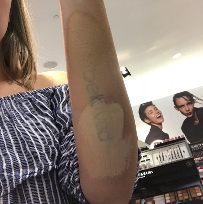 Any recommendations for covering a small forearm tattoo? Its just black ink, two line quote with dashed line.