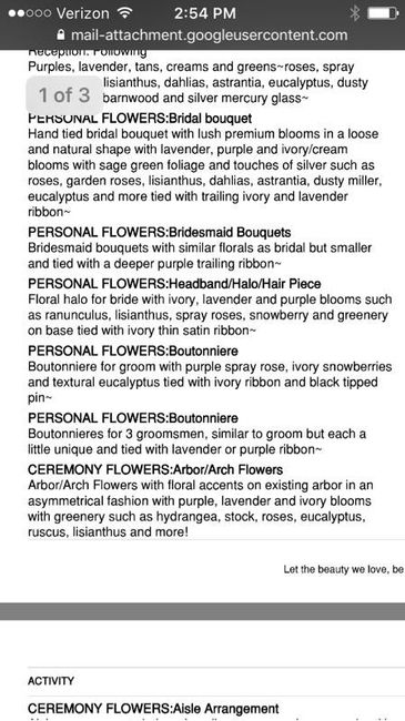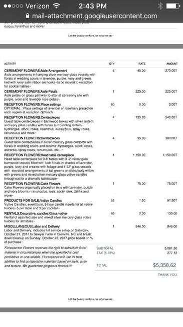 I have almost everything booked, but I'm having a difficult time finding a florist. I know we're getting married in peak season, but several florists have said their minimum is $5000. I fell in love with this florist and their minimum is $3500 which I thought was expensive, but not as bad as the others. I just received this quote. I need suggestions as to what to cut back. I didn't want a floral head piece or aisle petals, so I want those cut out already. Also, are the prices reasonable or kind of outrageous?