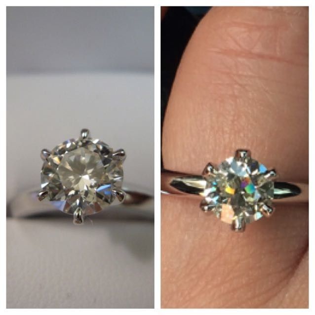 My fiance inherited his grandmas OEC diamond so we decided to create a setting. I spoke with a sales lady at a very popular engagement ring store of exactly what I wanted and she raved about one of their guys that he is amazing at what he does. I asked if they can custom make the Tiffany style 6 prong solitaire and they said yes. I asked for claw prongs as thin as possible without compromising its durability. I provided 2 photos of what I wanted. When I approved the wax it was bulky but the lady said once its in Platinum it will be tweaked the way I asked.