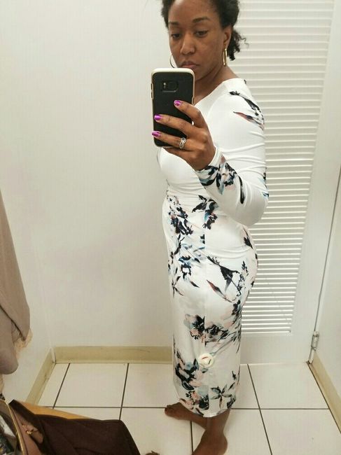 Trying on a dress for potential rehearsal dinner outfit. Loss a lil weight and it came from my butt and breasts Smiley sad