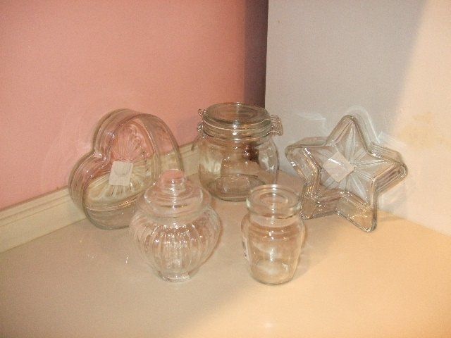I just bought 4 trifle bowls for 3.99 each at Christmas tree shop along with a 12.99 apothecary jar (i then had a 10% off your purchase coupon)