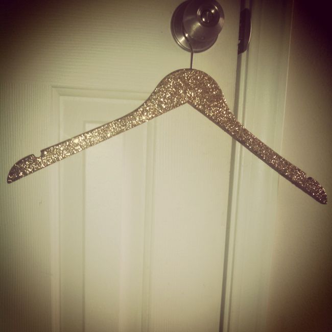 I know we had this conversation yesterday, but I wanted to post pictures for those who asked! Like I said before, I attempted to use modge podge and glitter to cover the hangers and I failed tremendously. I am not sure if I was doing it wrong, but after covering my house with glitter and working on them for 3 days, I gave up. I was going to completely veto the idea of having a pretty hanger until I thought about using spray paint instead.