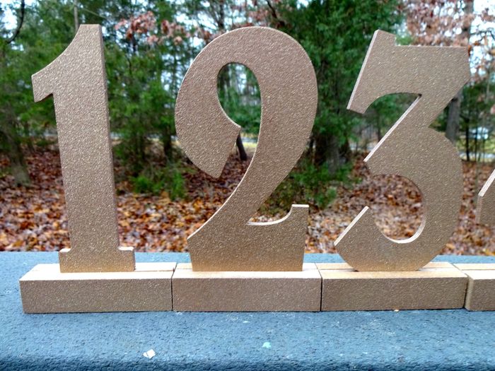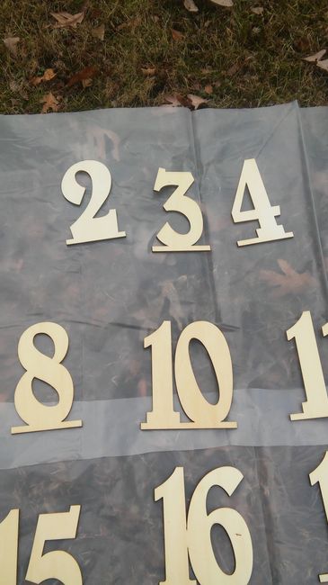 I was shocked when I started looking at wood table numbers and the cost. I found wood table numbers (1-20) on ebay for $11.95. I used rustoleum rose gold and glitter spray paint to paint them. I might go over them with one more coat of glitter spray paint. The total cost was around $22 ($27 if I do the additional coat of glitter paint).