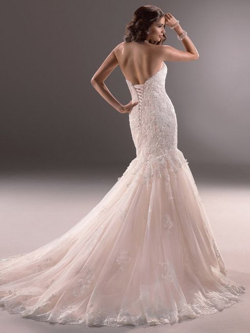 Sooo my current dilemma is whether or not to purchase a second dress. Don't get me wrong, I LOVE the dress I originally ordered, no regret there. However, the owner of the boutique I bought my dress from is having a HUGE sale and is selling another Maggie Sottero dress for over $1200 off the original price. I wouldn't even be considering buying another dress BUT my mother absolutely loved this other dress and I also think it's beautiful. The dress I have now is fantastic, but fairly heavy. I am definitely not opposed to having a lighter dress that's easier to move in for the reception...I just don't know if it's worth it. The first picture is of my original dress (it will in white) the second and third pictures are of the possible second dress.
