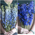 I've decided to DIY all of my floral arrangements and would like some input on which assortment of flowers to use. I'm doing Delphinium Bouquets like the ones you see in the first picture. Our colors...