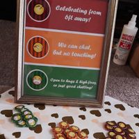 Hi! I have a question about my guestbook. I’m planning on doing something with stones like the attached photo. I am needing help with what to put the sign. His last name is Barney so I think something...