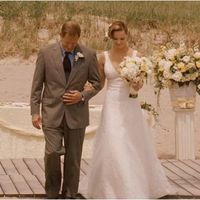 Hi all! My fiance and I are considering doing a beach wedding next year. My concern is the sand, though, and walking in it. I'd prefer having something solid to walk on. In 27 dresses she has sort of...
