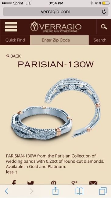 Anyone else have this specific ring or similar? I just want some ideas because online might be my best bet even though I would rather see the pair in person before purchasing. I live in a smaller college town in Oklahoma so my options are limited to what I've been shown at the local stores here. I'll be making a trip to the city soon though to continue the search!