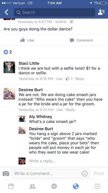 Where I am from you can't go to a wedding dance without seeing a dollar dance. It is very popular and the dance can last several songs due to the lines to dance with the bride and groom. While there is money, it gets people up to dance that normally wouldn't get out on the dance floor. I also think it's cute to see how excited the little kids get taking a dollar up and dancing with the bride or groom.