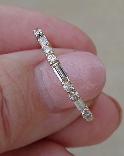Hi, just wondering what others have chosen for a wedding band. I have a solitare emerald cut engagement ring. I like the idea of a single band of diamonds for wedding band. Any ideas?